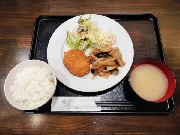03/07 豚肉とナスの味噌炒め、カレーコロッケ(珈琲付き¥900-)