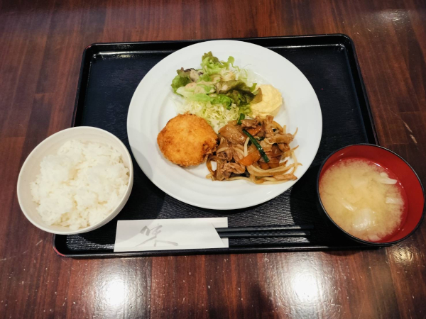 03/11 豚肉のスタミナ炒め、玉子とポテトとチーズのフライ(珈琲付き¥900-)
