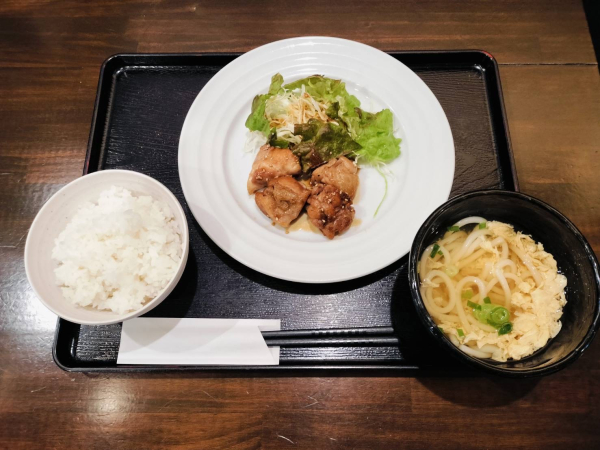 03/29 鶏の甘辛揚げ、玉子とじうどん(珈琲付き¥900-)