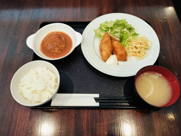 04/09 煮込みハンバーグ、白身魚フライ(珈琲付き¥900-)