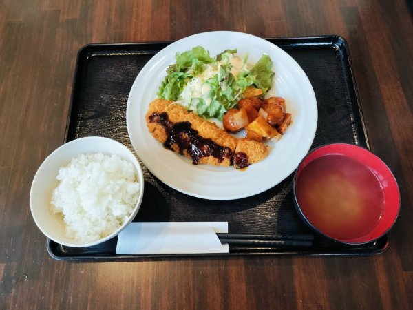 04/23 チーズ入りささみカツ、ナポリタンミートボール(珈琲付き¥900-)