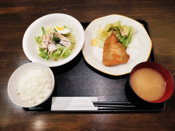 04/26 冷しゃぶサラダうどん、アジフライ(珈琲付き¥900-)