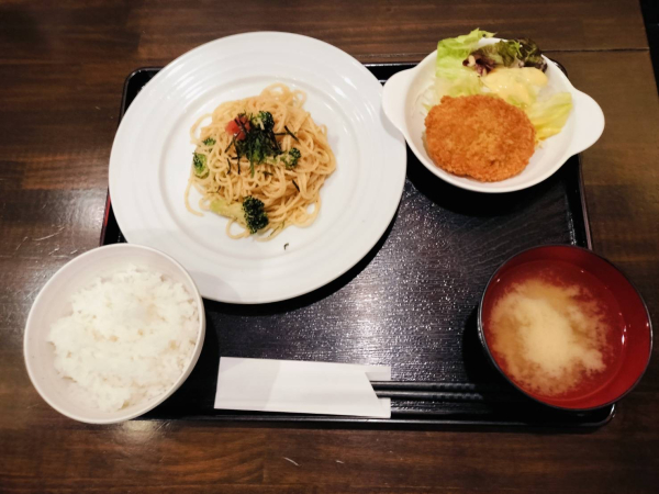 05/19 和風明太子スパゲティ、肉じゃがコロッケ(珈琲付き¥900-)