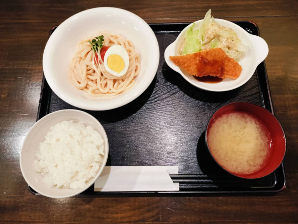 06/07 冷やし明太子うどん、チーズ入りささみカツ(珈琲付き¥900-)