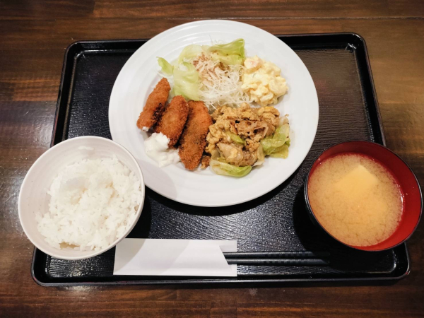 10/04 豚肉とレタスのオイスターソース炒め、大葉巻きアジフライ(珈琲付き¥900-)