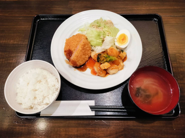 10/27 エビチリ、ハムカツ(珈琲付¥950-)
