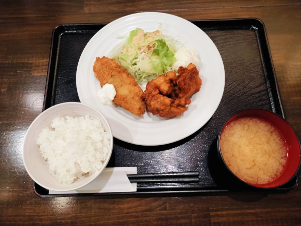 10/29 鶏の唐揚げ、白身魚フライ(珈琲付¥950-)