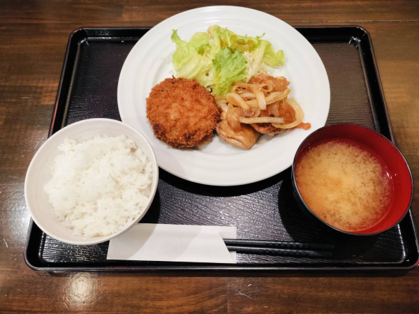 11/07 鶏の照り焼き、ねぎ塩ミンチカツ(珈琲付¥950-)