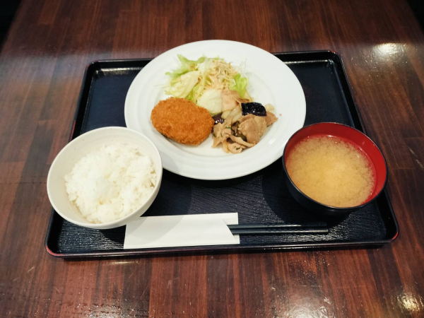11/20 豚バラとナスのポン酢炒め、牛肉コロッケ(珈琲付¥900-)