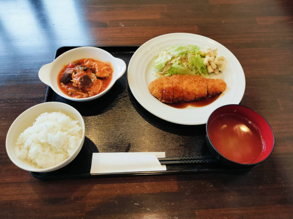 12/25 豚ロースのトマト煮、チーズ入りささみカツ(珈琲付¥900-)