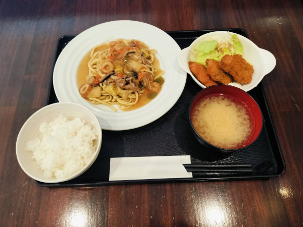 01/10 あんかけ太焼きそば、大葉巻きアジフライ(珈琲付¥900-)