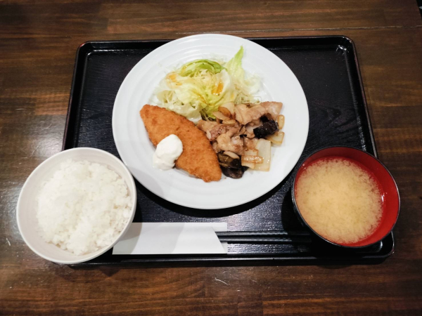01/19 豚バラとナスのポン酢炒め、白身魚フライ(珈琲付¥900-)