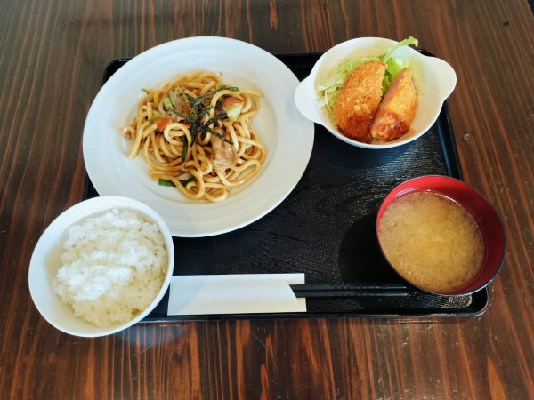 02/20 スタミナ焼きうどん、ハムカツ(珈琲付¥900-)