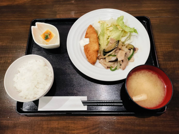 03/06 豚肉とナスの味噌炒め、白身魚フライ(珈琲付¥900-)