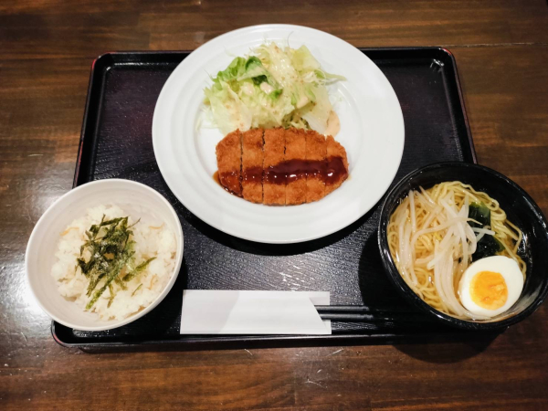 03/28 しょうがご飯、ミニとんかつ、和風ラーメン(珈琲付¥900-)