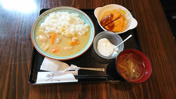 06/18 ホワイトカレー、ハムカツ、スープ付き(珈琲付¥850-)