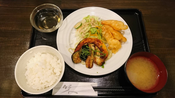 06/22 白身魚のバジルソース、 エビ天(珈琲付¥850-)