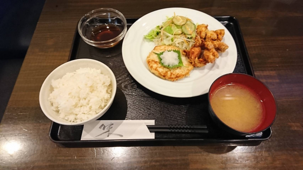 08/08 豆腐と鶏ミンチのおろしハンバーグ、鶏の唐揚げ(珈琲付¥850-)