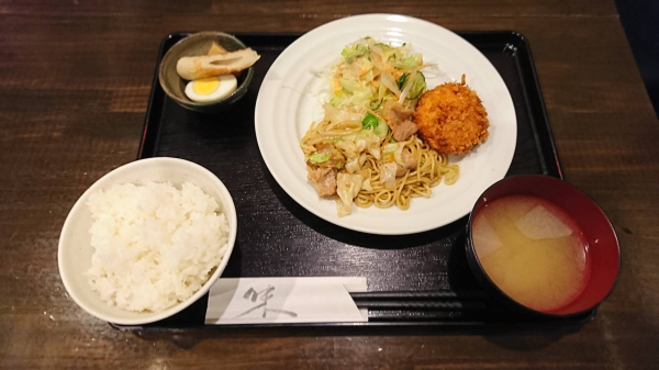 08/31 オイスターソース焼きそば、エビとマッシュルームのクリーミーコロッケ(珈琲付¥850-)