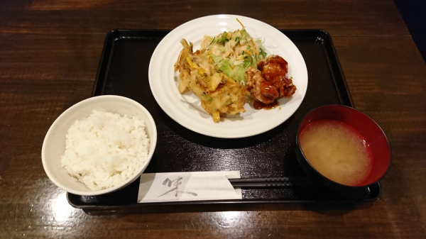 09/20 鶏の甘酢、エビと野菜のかき揚げ(珈琲付¥850-)