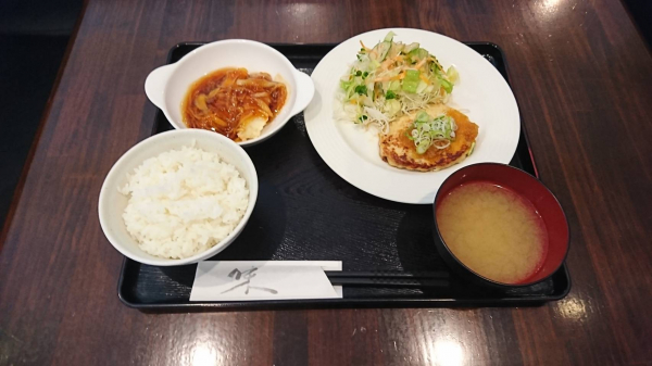 09/26 豆腐と鶏ミンチのおろしハンバーグ、白身魚の甘酢あんかけ(珈琲付¥850-)