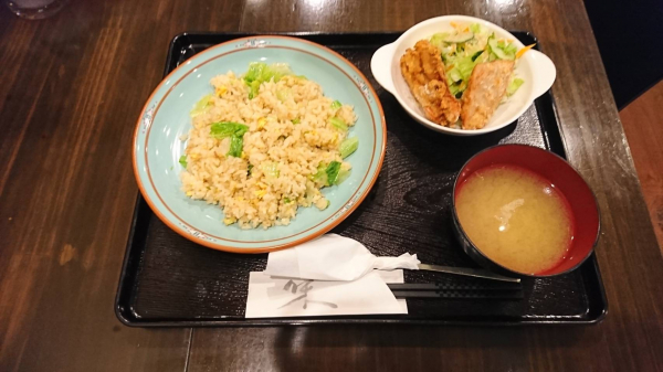 10/03 ツナマヨレタスチャーハン、鶏の唐揚げ(珈琲付¥850-)