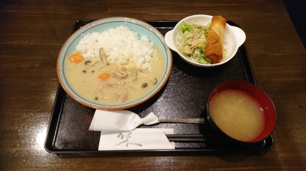 10/04 鶏肉ときのこのホワイトカレー、春巻き(珈琲付¥850-)
