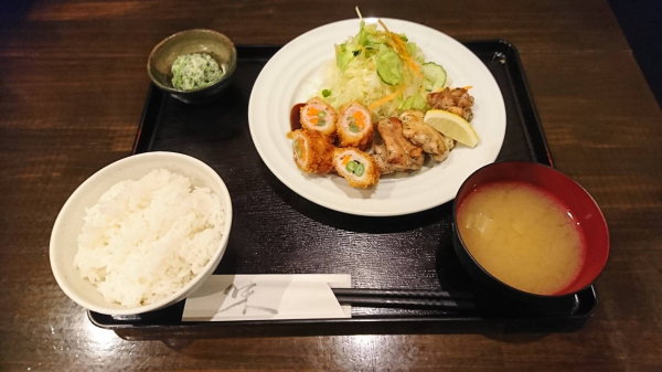 10/11 バジルチキン、豚肉の野菜梅肉巻きフライ(珈琲付¥850-)