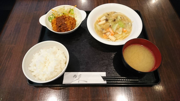 04/23 豚肉とナスの味噌炒め、ハムカツ(珈琲付¥900-)