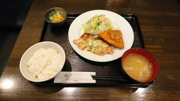 04/21 三元豚のゆずおろしとんかつ、揚げしゅうまい(珈琲付¥900-)