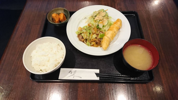 11/14 スタミナ焼き、ささみの梅しそ天ぷら(珈琲付¥850-)