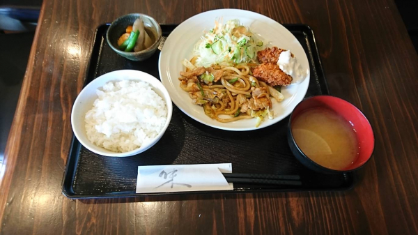 11/29 焼きうどん、カキフライ(珈琲付¥850-)