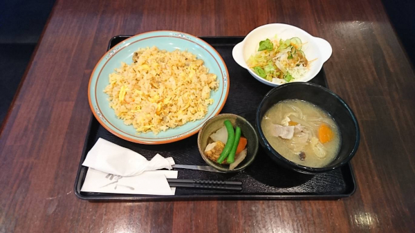 12/04 シーフードピラフ、豚汁、根野菜の煮物、サラダ(珈琲付¥850-)