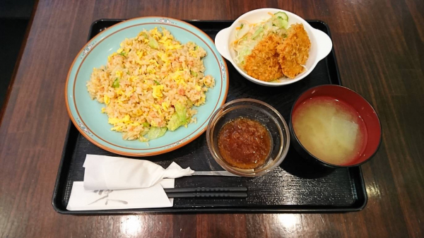 12/12 鮭レタスチャーハン、ゆずおろしポン酢ヒレカツ(珈琲付¥850-)