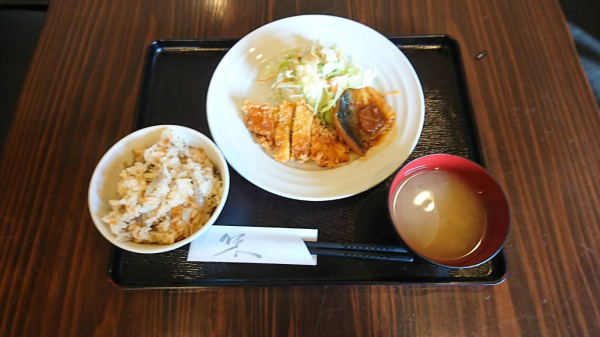 12/21 炊き込みご飯、さばの味噌煮、ササミカツ(珈琲付¥850-)