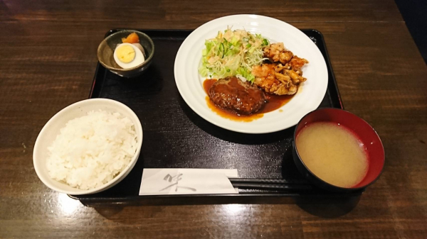 12/22 デミソースハンバーグ、鶏の甘酢(珈琲付¥850-)
