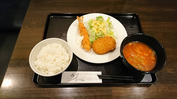01/10 エビフライ、カボチャコロッケ、ミネストローネ(珈琲付¥850-)