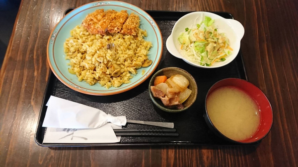 04/08 豚肉とナスの味噌炒め、チキンカツ(珈琲付¥900-)
