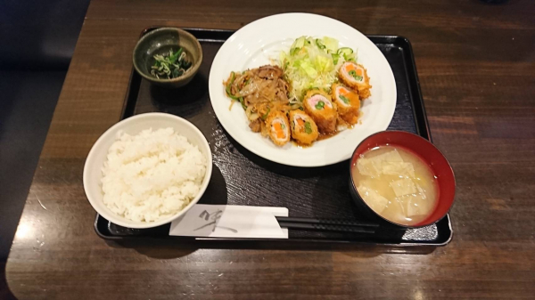 01/12 牛スライスの焼肉、豚肉の野菜巻きフライ(珈琲付¥850-)
