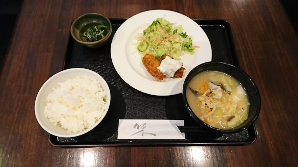 01/15 カキフライ、白湯野菜ラーメン(珈琲付¥850-)