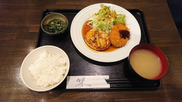 01/21豆腐と鶏ミンチのてりやきハンバーグ、カボチャコロッケ (珈琲付¥850-)