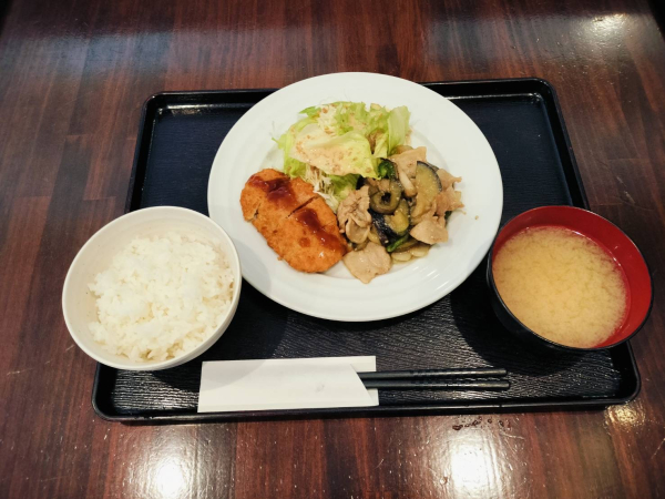 04/08 豚肉とナスの味噌炒め、チキンカツ(珈琲付¥900-)