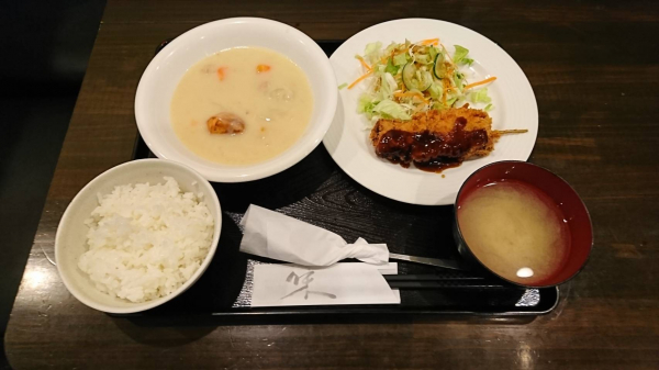 01/29 鶏ごぼう串カツ、クリームシチュー(珈琲付¥850-)