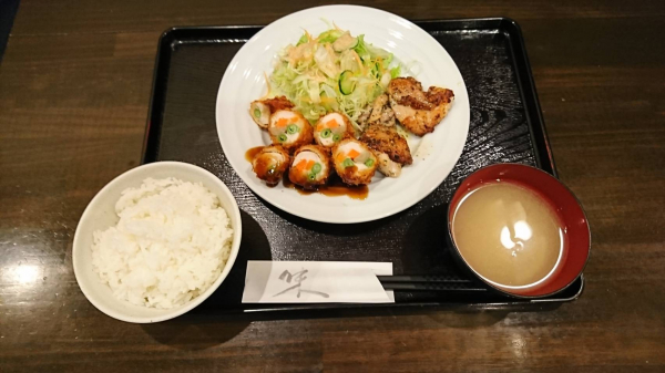 02/07 バジルチキン、ササミの野菜巻き(珈琲付¥850-)