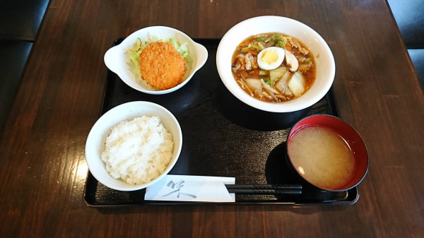 02/08 あんかけ焼きうどん、カニクリームコロッケ(珈琲付¥850-)