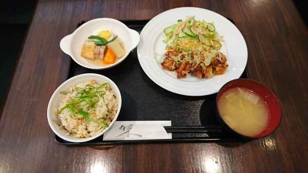 02/25 あさりの炊き込みご飯、おろし唐揚げ.小鉢(珈琲付¥850-)