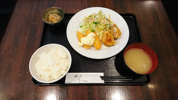 04/04 チーズ入りささみカツ、揚げぎょうざ(珈琲付¥900-)