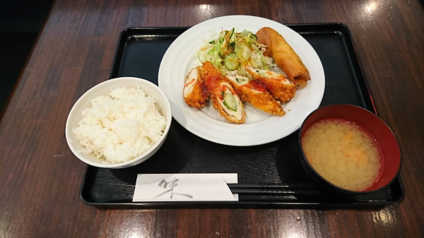 04/04 チーズ入りささみカツ、揚げぎょうざ(珈琲付¥900-)