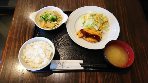 04/04 チーズ入りささみカツ、揚げぎょうざ(珈琲付¥900-)