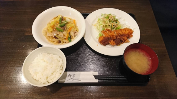 04/04 チーズ入りささみカツ、揚げぎょうざ(珈琲付¥900-)